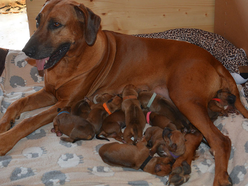 Arusha hat am heute Nacht 5 Buben und 6 Mädels das Leben geschenkt. Leider hat es ein Mädel nicht geschafft! Gute Reise über die Regenbogenbrücke, Frau Gelb!
